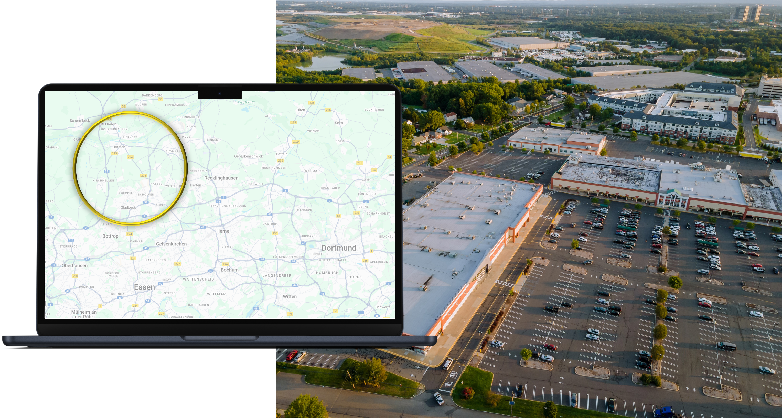 Gelegen an optimaler Ein-/Ausfall- und Umgehungslage auf aktivem Parkplatz nahe Möbel-, Garten- und Baumaterial-Händlern, B2B und B2C
