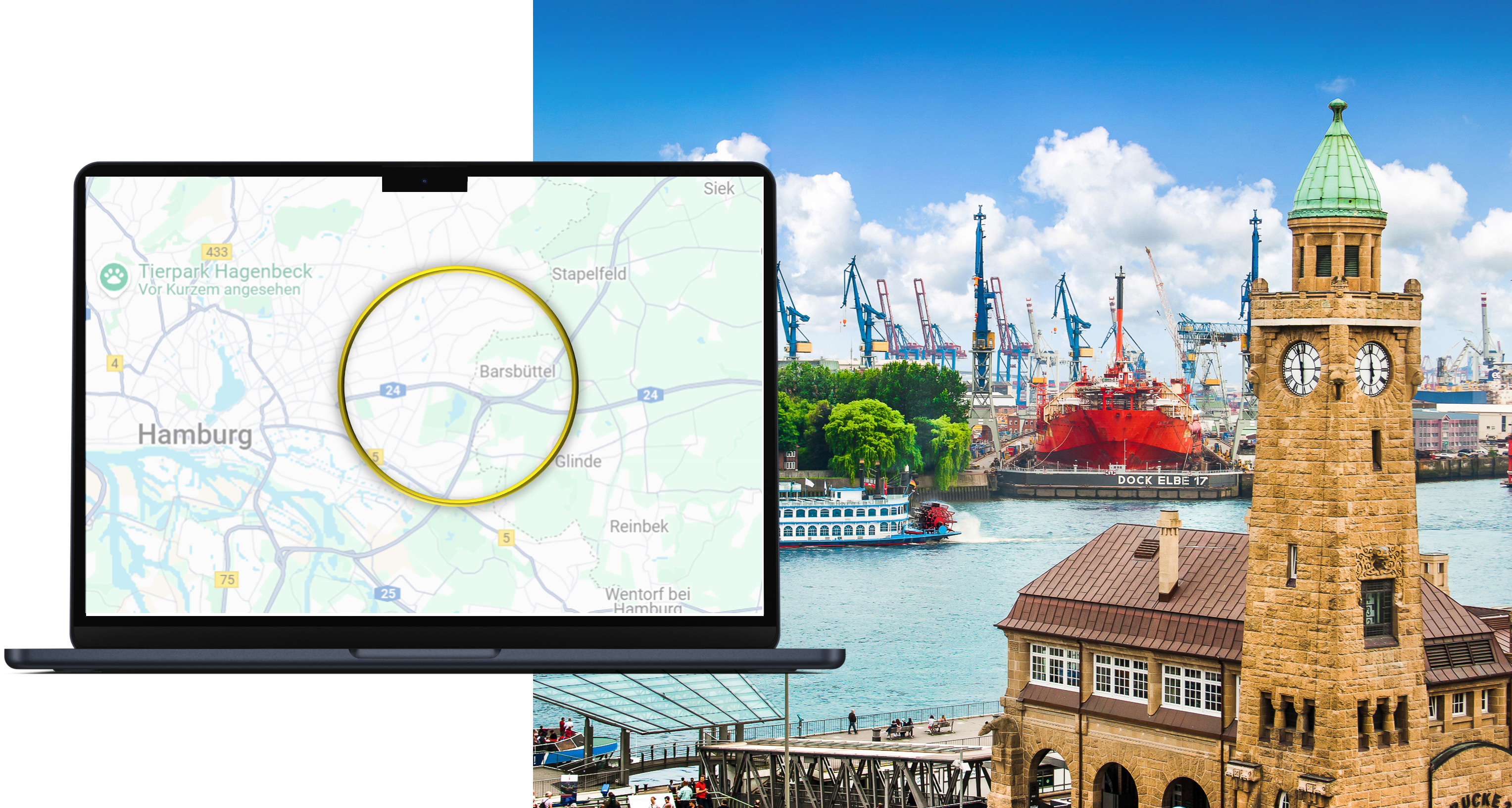 Direkt an einer der wichtigsten Ein-/Ausfallstraßen Hamburgs gelegen neben Hotel, Restaurant und Sportanlage garantiert diese Top-Lage starke Frequentierung