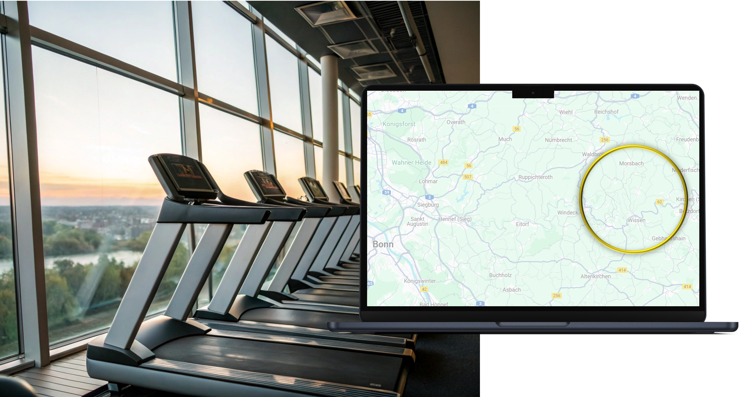Stark frequentierte Lage auf aktivem Parkplatz eines Fitness-Studios und Discount-Supermarkts an wichtiger Durchgangs-/Verbindungsstraße